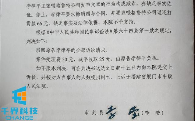 認為公眾號文章失實(shí),海南一律師起訴要求退回打賞被駁
